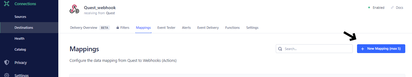 Next after creating the destination, click the **Mappings** tab and add a new mapping