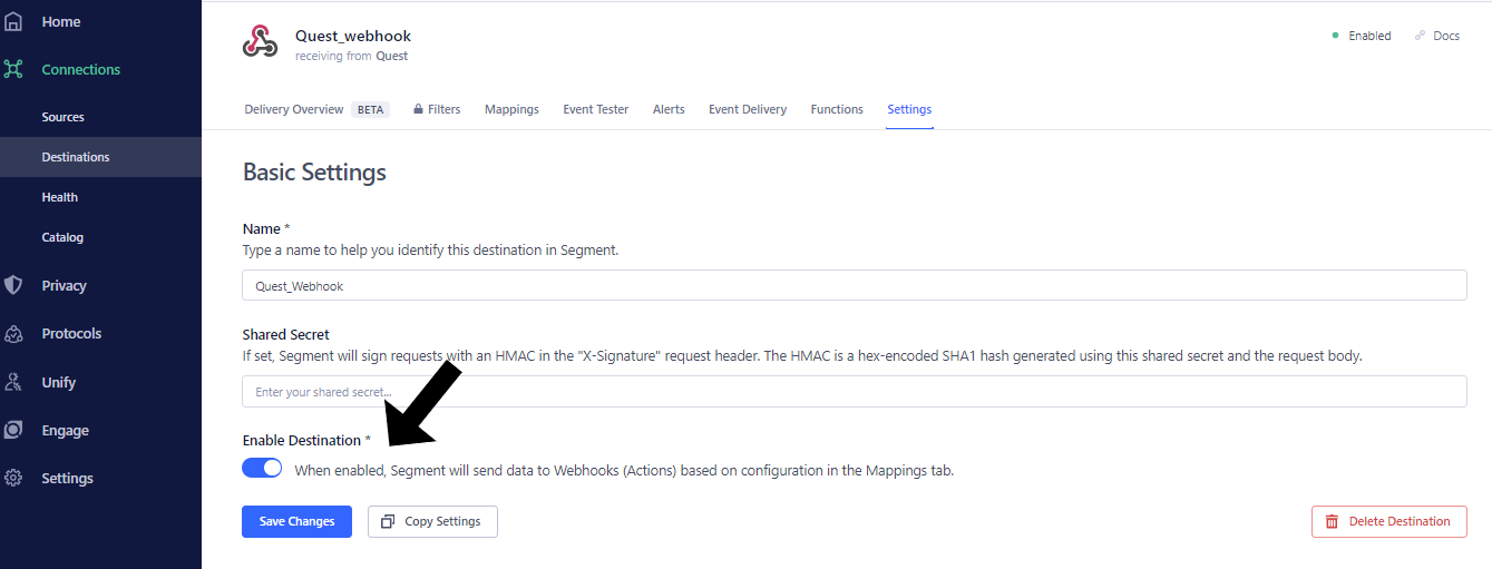 Congratulations! You have successfully set up Quest as a destination for Segment.